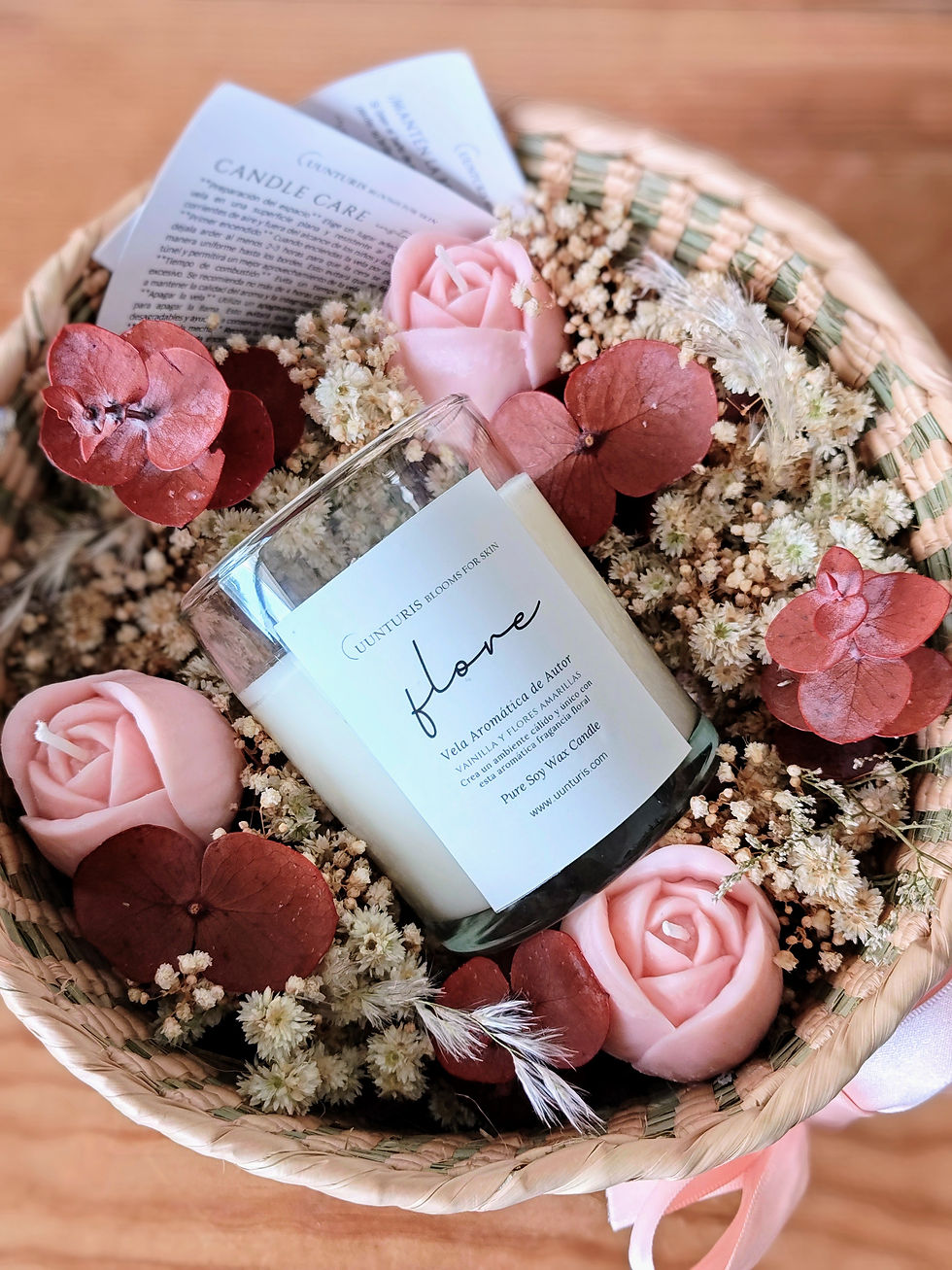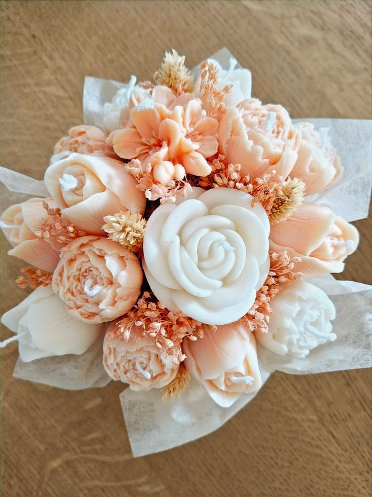 Descubre la belleza de nuestros Bouquets de velas, perfectos para regalar en esa fecha especial y dar un toque natural y elegante a tu hogar. Cada uno está cuidadosamente elaborado, fusionando flores vibrantes con la suavidad de la cera, ofreciendo una decoración duradera y ecológica.